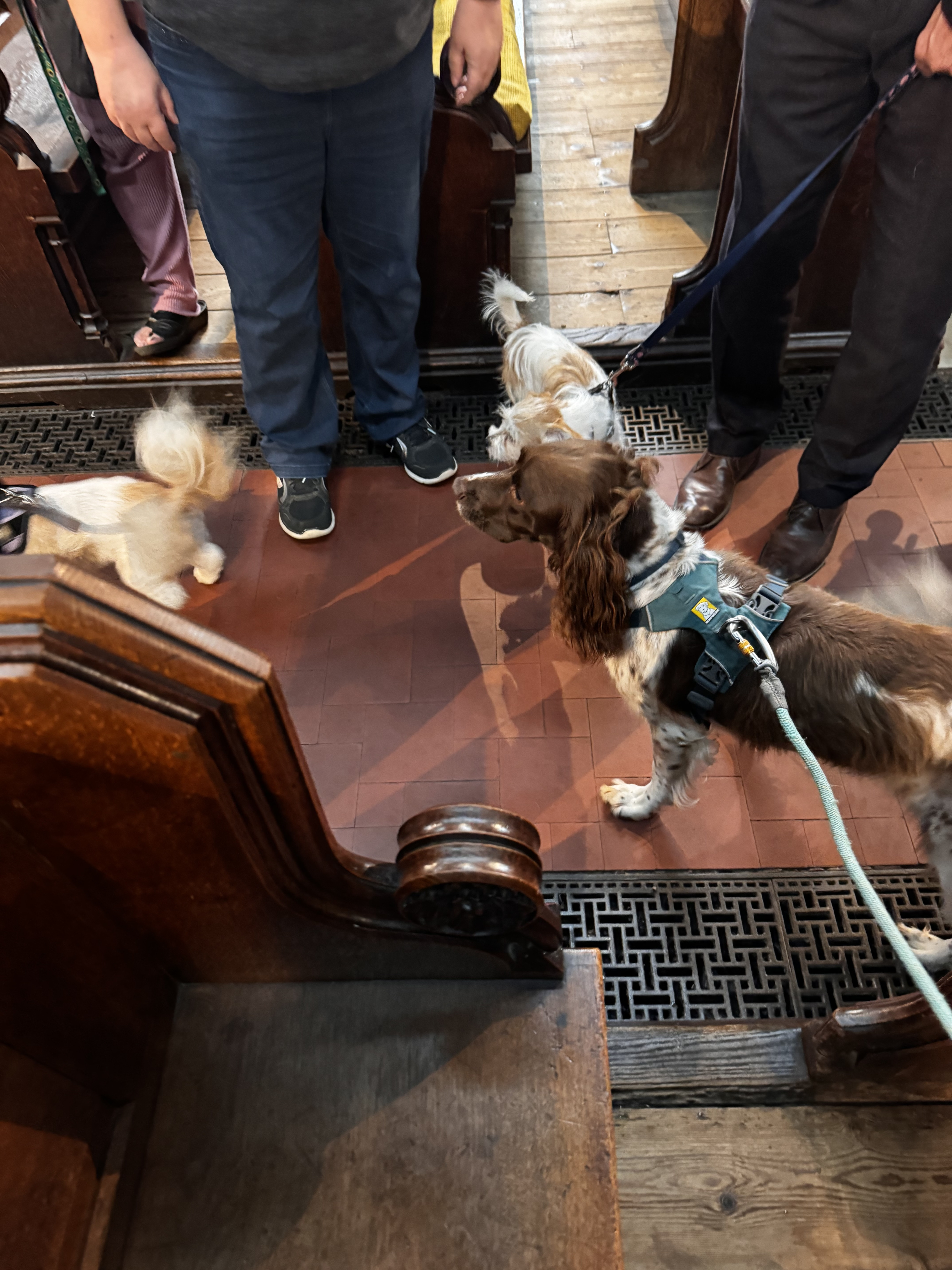 We had lots of dogs and even a couple of tortoises, young and old. Cats are harder to transport so their owners brought in photographs of them instead for a blessing. Many other pets' names were written down and placed on the altar. All were blessed. It was a joyous occasion, with lots of excited dogs and beaming owners!